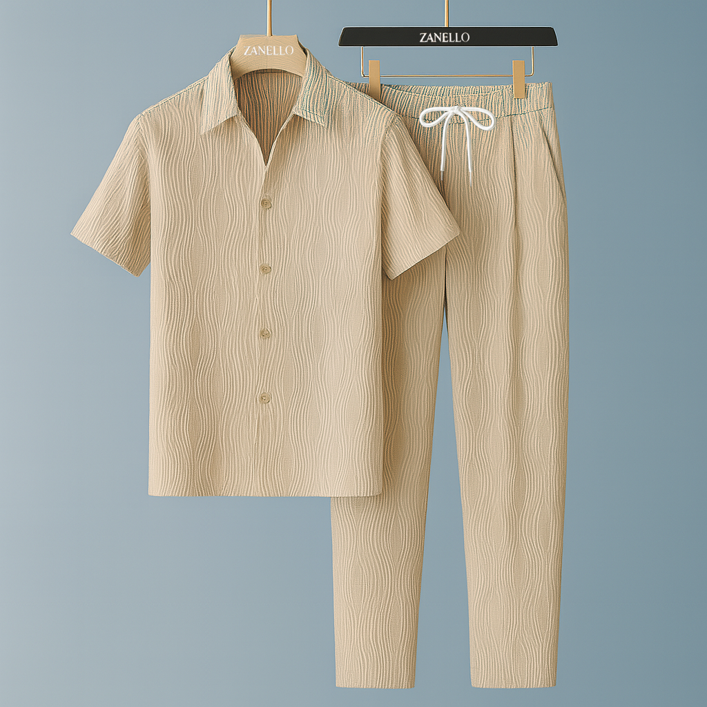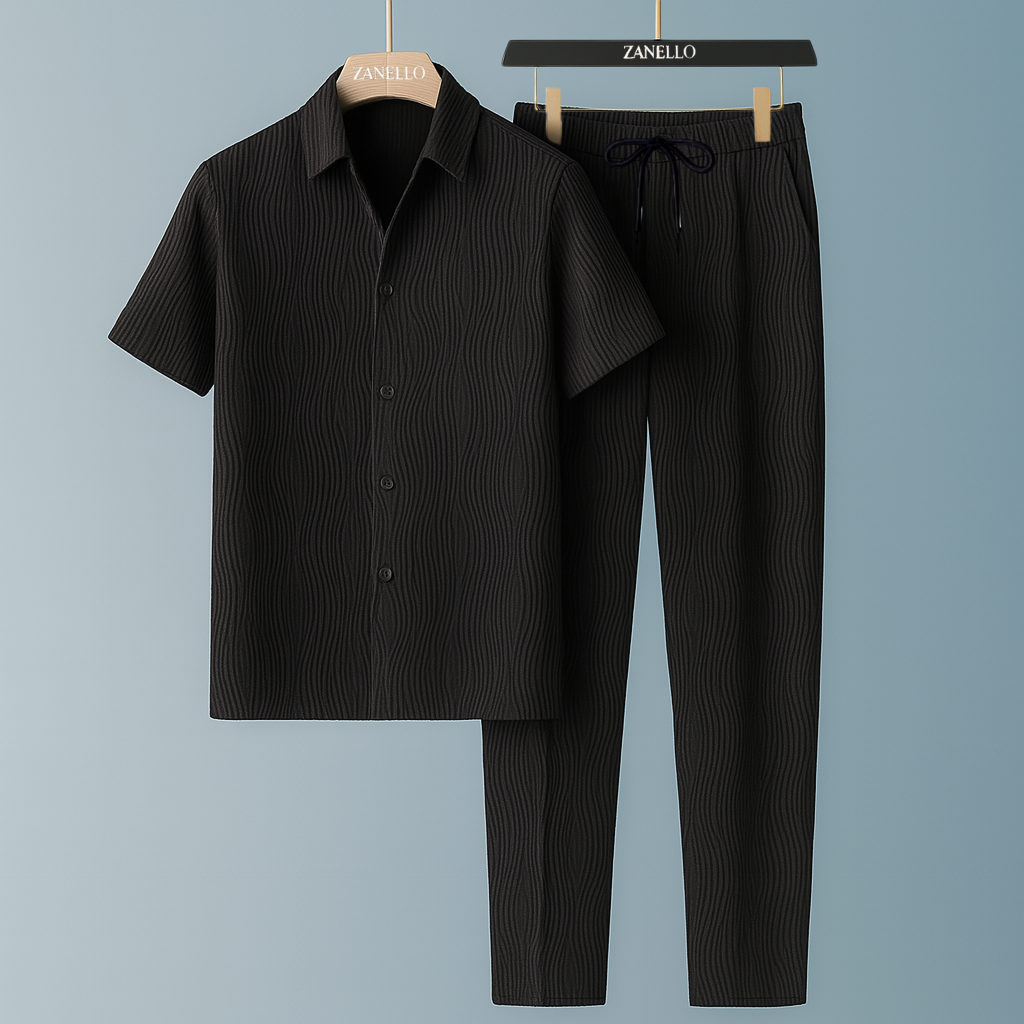 Esalta la tua quotidianità con il Lombardia Set™ , dove silhouette pulite e texture traspiranti si fondono in un due pezzi raffinato e disinvolto. Composto da una camicia abbottonata e pantaloni affusolati con coulisse , questo completo è pensato per gli uomini che apprezzano una sicurezza discreta, sia che si tratti di rilassarsi sulla costa o di presentarsi con stile.